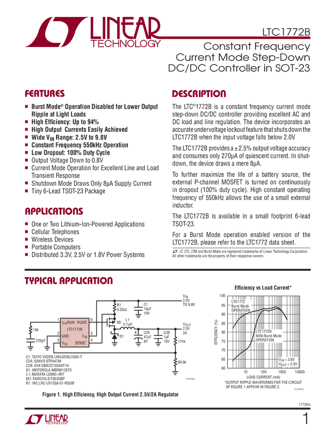 LTC1772B Constant Frequency Current Mode Step-Down DC/DC Controller in SOT-23
