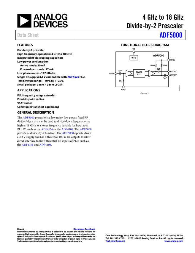 ADF5000 4 GH TO 18 GH Divide-by-2 Prescaler