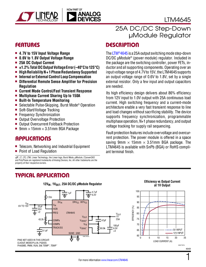 LTM4645 25A DC/DC Step-Down µModule Regulator