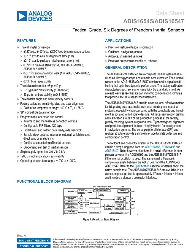 ADIS16545 Tactical Grade, Six Degrees of Freedom Inertial Sensors