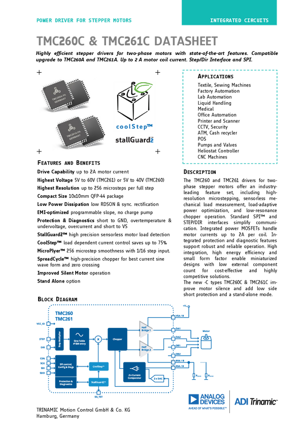 TMC261 Stepper motor driver 5 to 60V, up to 1.4A with S/D and SPI Interface, 256 µ...