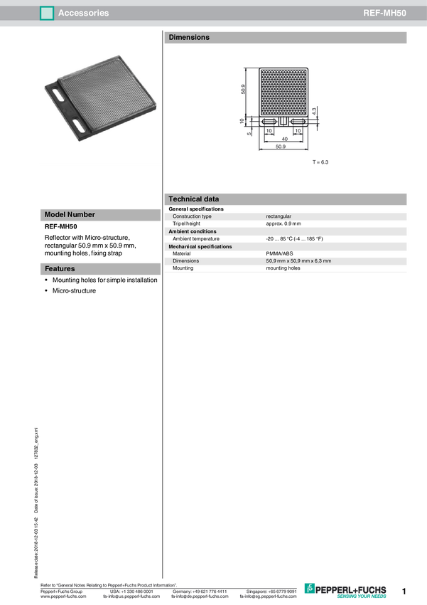 127832 Odbłyśnik Pepperl+Fuchs REF-MH50 127832 5 szt.