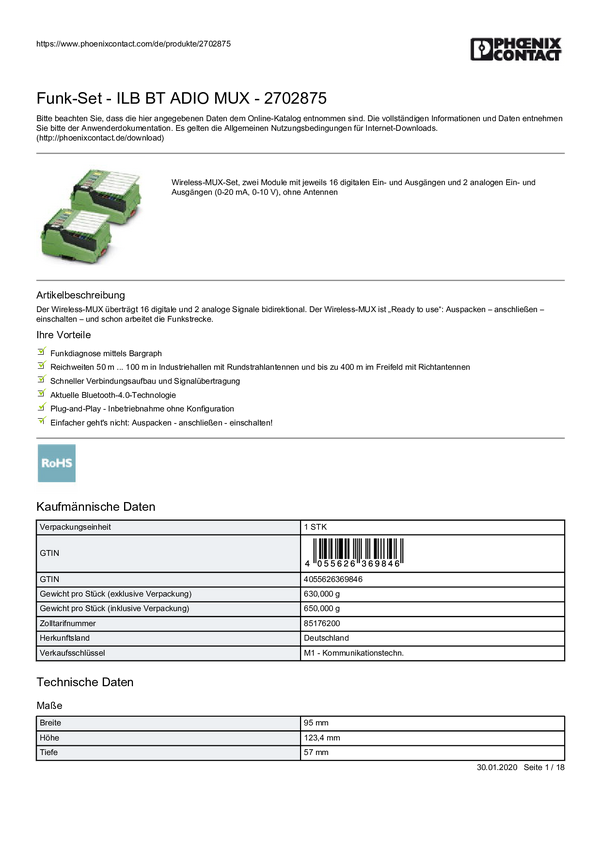 2702875 Moduł I/O Phoenix Contact ILB BT ADIO MUX 2702875, 1 szt.