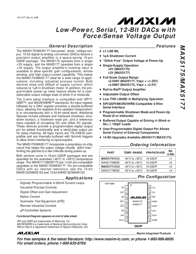 MAX5177 Low-Power, Serial, 12-Bit DACs with Force-Sense Voltage-Output