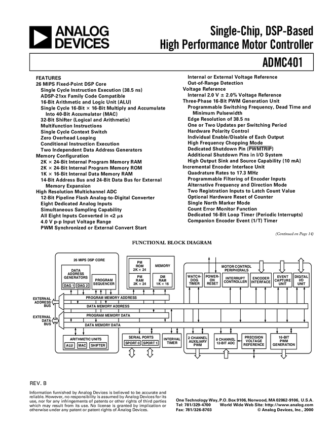 ADMC401 Single-Chip, DSP-Based High Performance Motor Controller