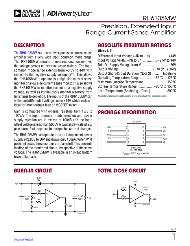 RH6105 Radiation Hardened Micropower Precision, Rail-to-Rail Input Current Sense A...
