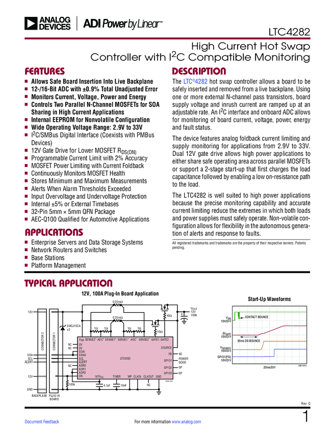 LTC4282 High Current Hot Swap Controller with IC Compatible Monitoring