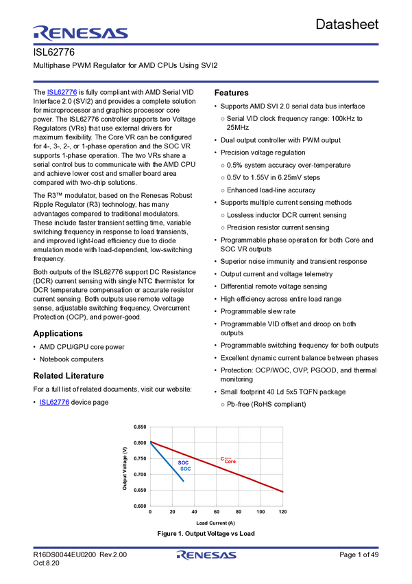 ISL62776 Multiphase PWM Regulator for AMD CPUs Using SVI2