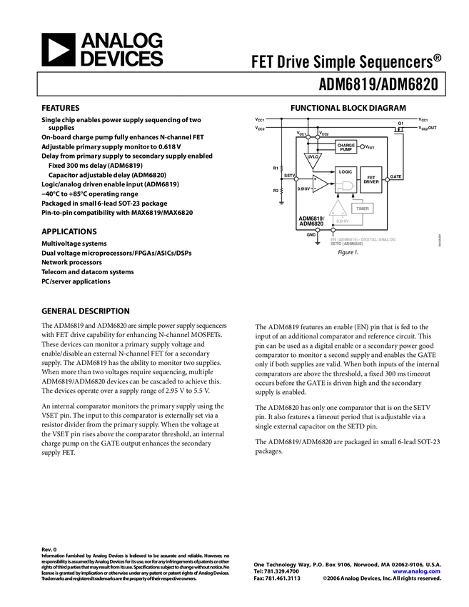 ADM6819 FET Drive Simple Sequencer w/ Fixed 200ms Delay