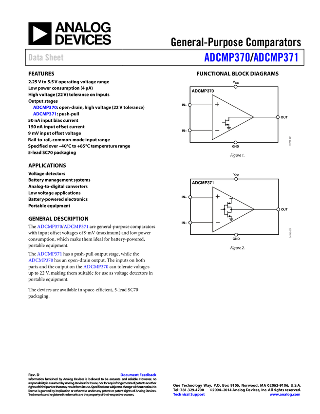 ADCMP370 General Purpose Comparator w/an Open - Drain Output