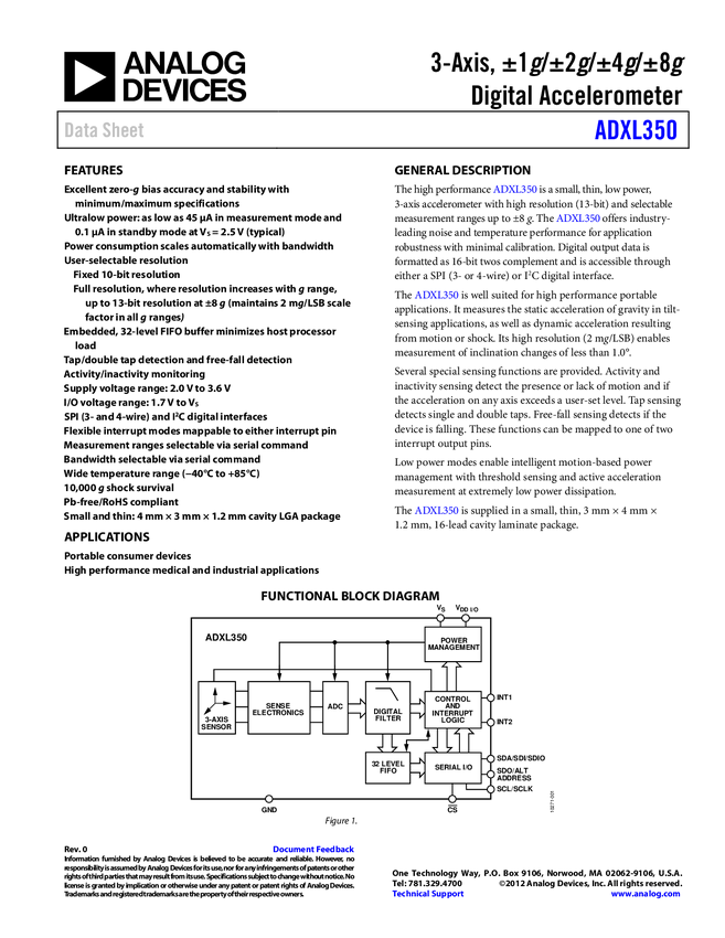 ADXL350 3-Axis ±1/±2/±4/±8 Digital Accelerometer