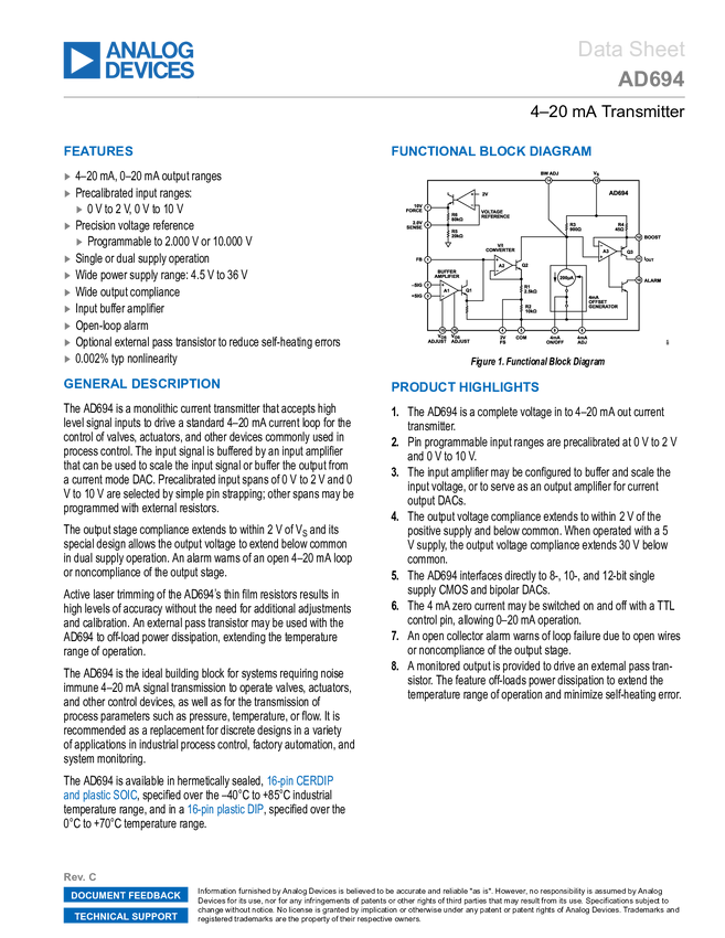 AD694 4-20mA Monolithic Current Transmitter