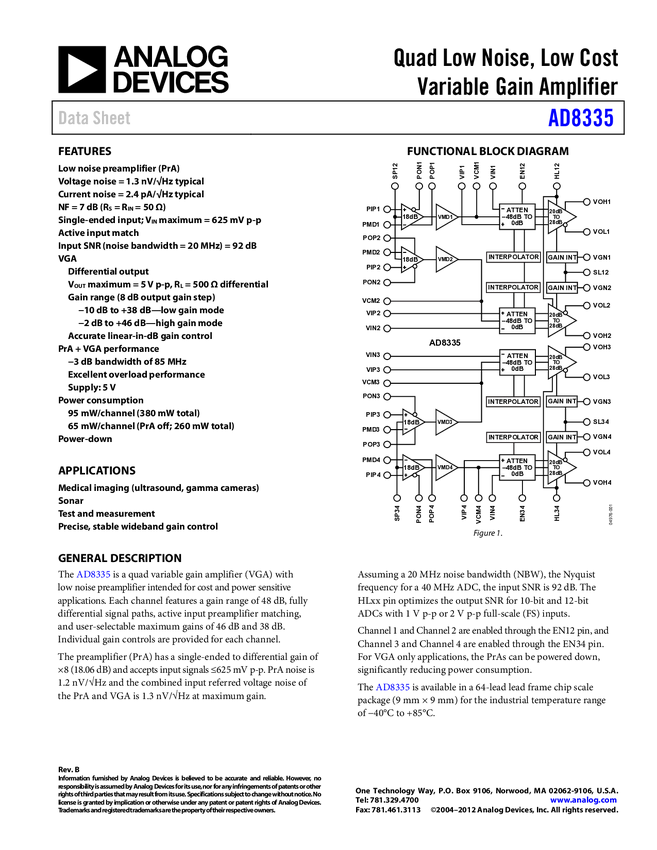 AD8335 Quad Low Noise, Low Cost Variable Gain Amplifier