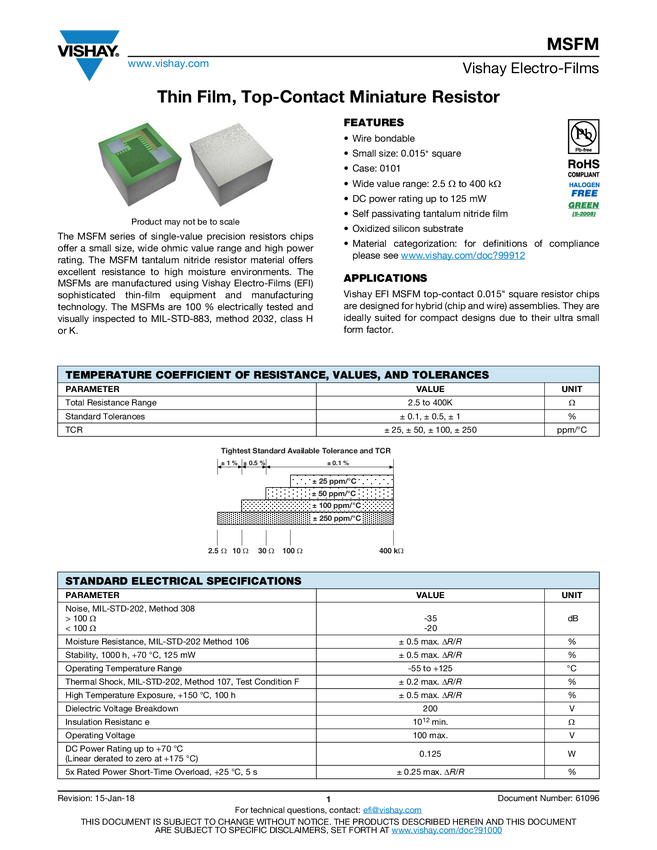 MSFM Thin Film, Top-Contact Miniature Resistor