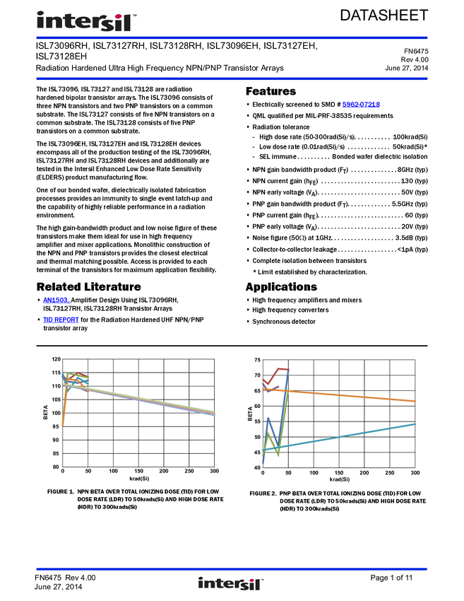 Radiation Hardened Ultra High Frequency NPN/PNP Transistor Arrays