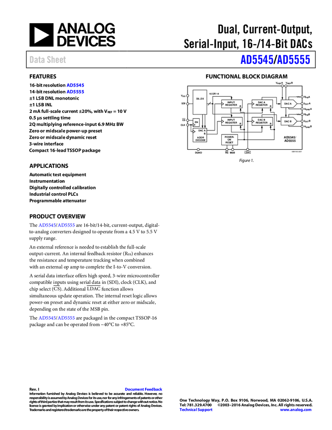 AD5555 Precision DUAL 16-Bit 14-Bit-DACs in Compact TSSOP Packages