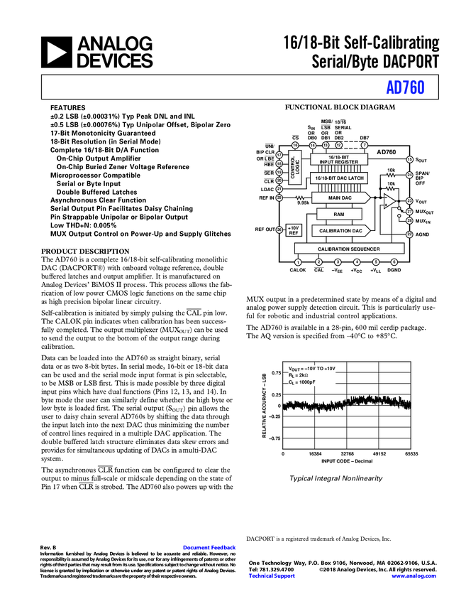 AD760 16/18-Bit Self-Calibrating Serial/Byte DACPORT