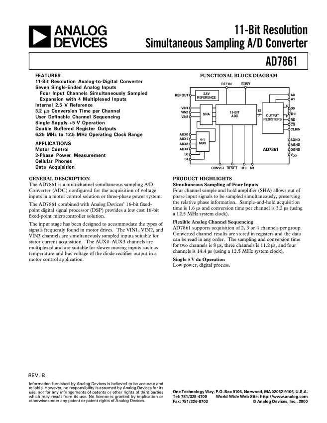AD7861 11-Bit Resolution Simultaneous Sampling ADC