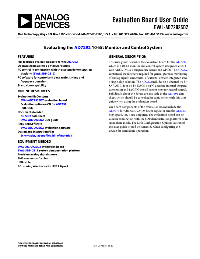 AD7292 10-Bit Monitor & Control System with ADC, DACs, Temperature Sensor and GPI...
