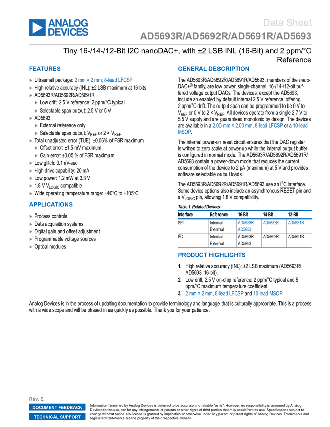 AD5693R Tiny 12-Bit IC DAC+, with ±1 LSB INL and 2 /°C Reference