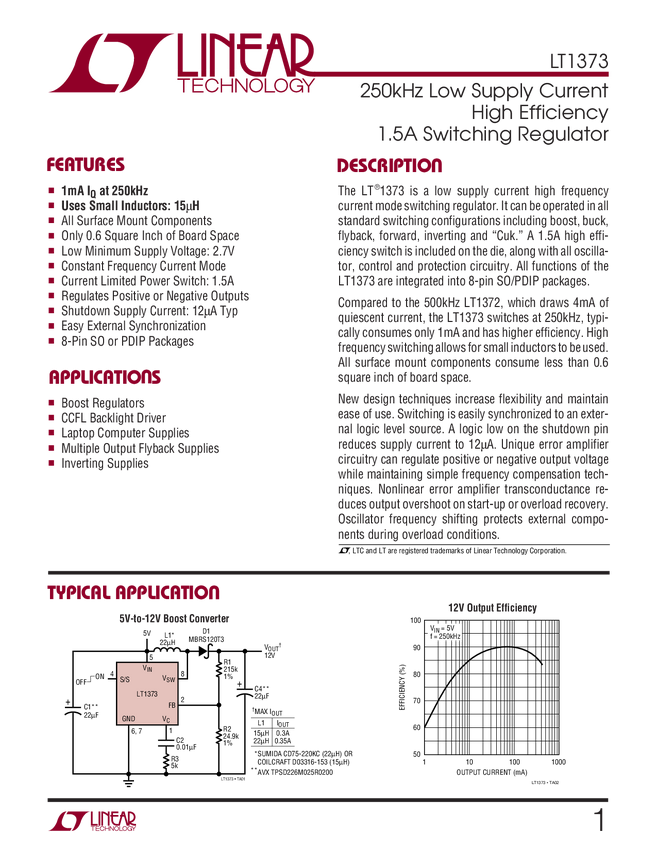 LT1373 250kHz Low Supply Current High Efficiency 1.5A Switching Regulator