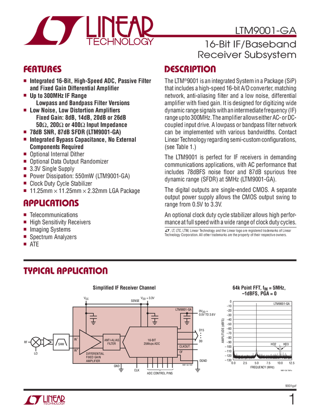 LTM9001-GA 16-Bit, 25Msps IF/Baseband Receiver Subsystem