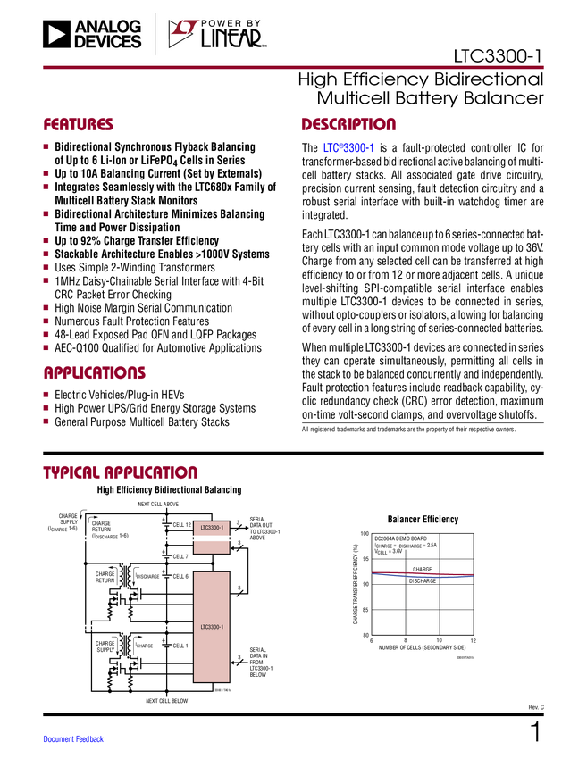 LTC3300-1 High Efficiency Bidirectional Multicell Battery Balancer