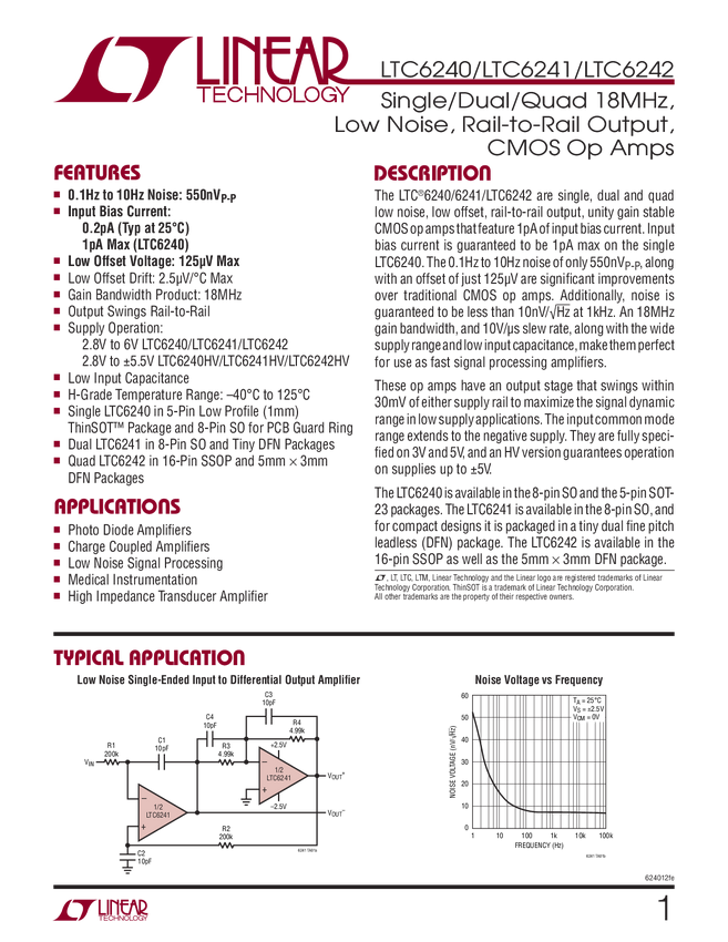 LTC6240 Dual 18MHz, Low Noise, Rail-to-Rail Output, CMOS Op Amp
