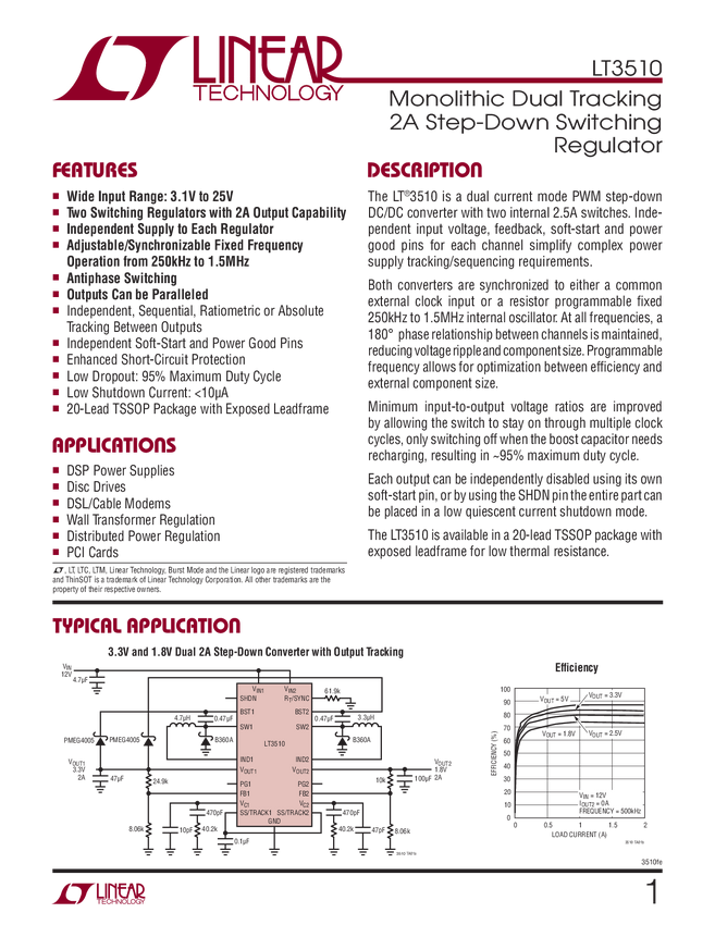LT3510 Monolithic Dual Tracking 2A Step-Down Switching Regulator