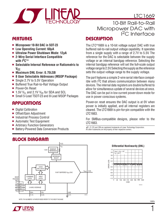 LTC1669 10-Bit Rail-to-Rail Micropower DAC with IC Interface