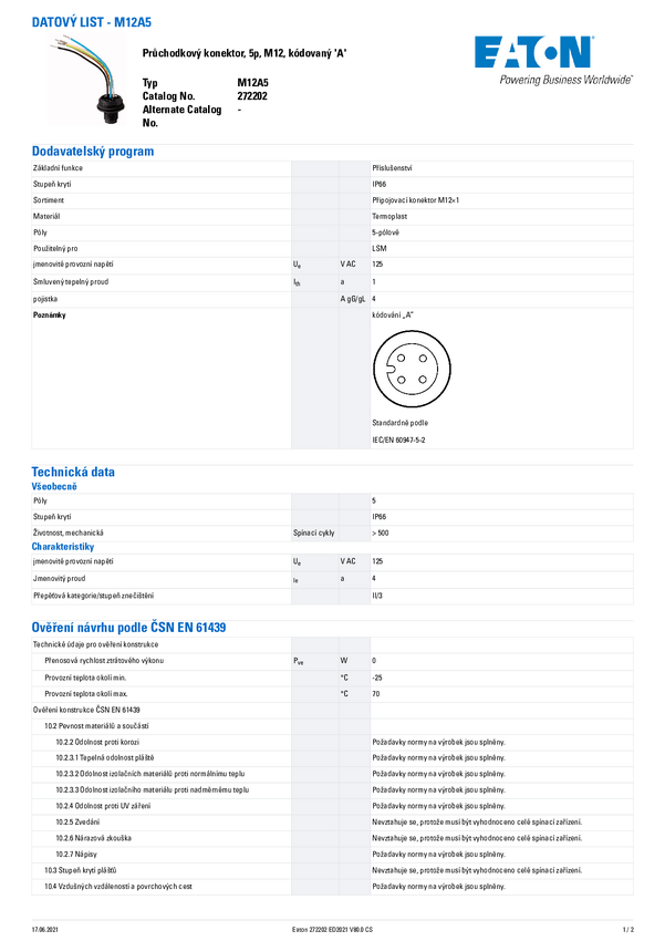 272202 Eaton 272202 M12A5 Zlącze 125 V IP66 1 szt.