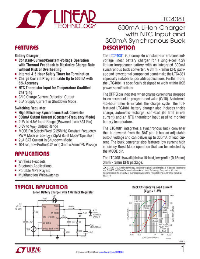 LTC4081 500mA Li-Ion Charger with NTC Input and 300mA Synchronous Buck
