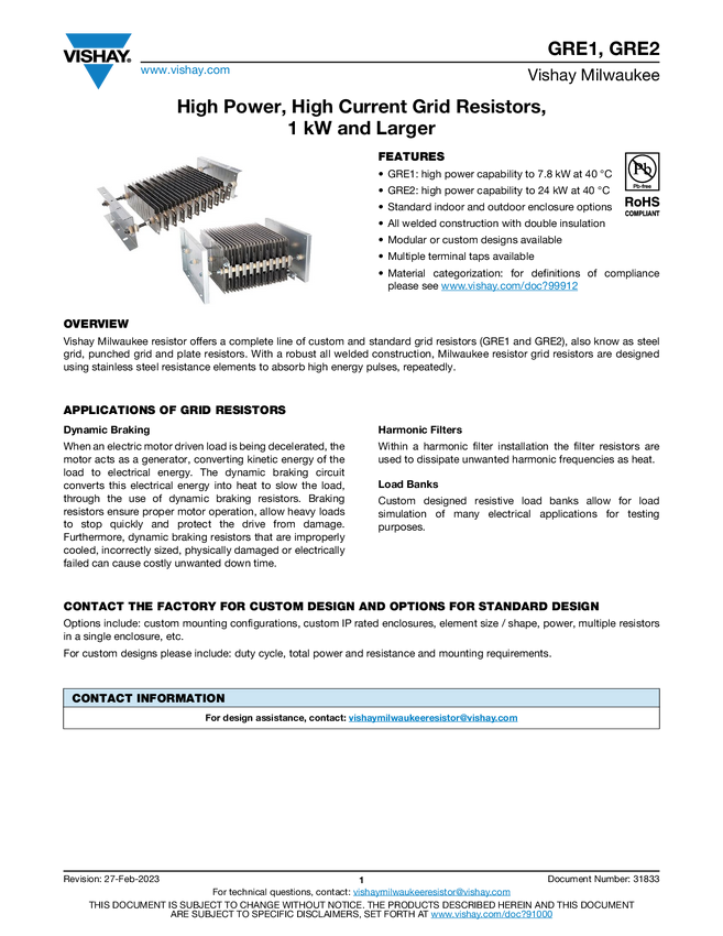 GRE1 High Power, High Current Grid Resistors, 1 kW and Larger