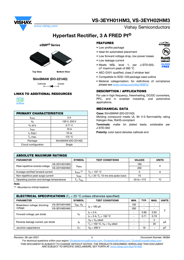 VS-3EYH02HM3 Hyperfast Rectifier, 3 A FRED Pt®