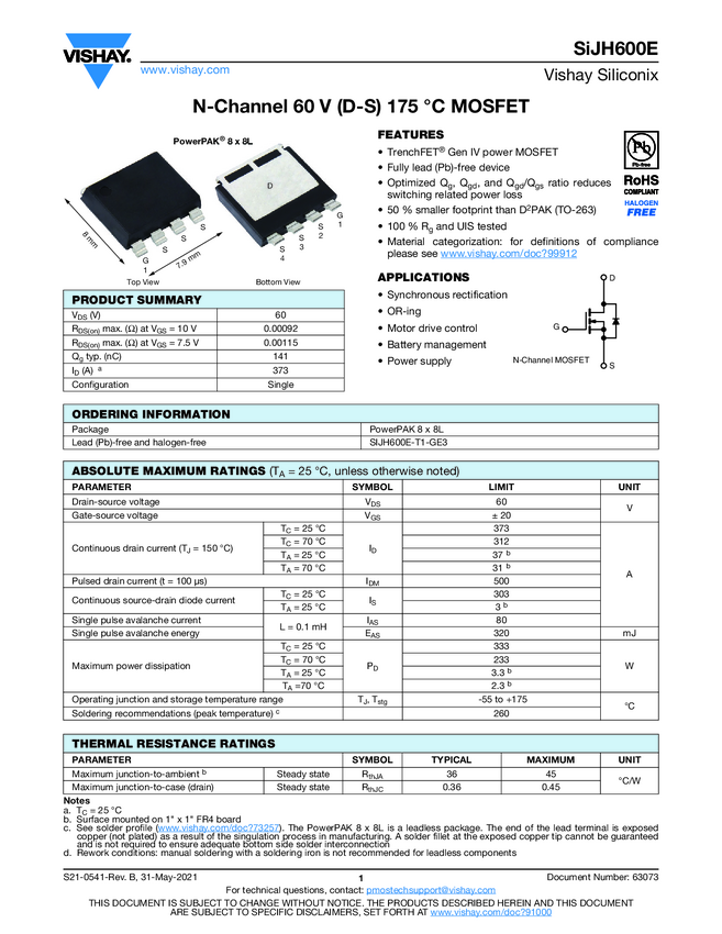 SiJH600E N-Channel 60 V (D-S) 175 °C MOSFET