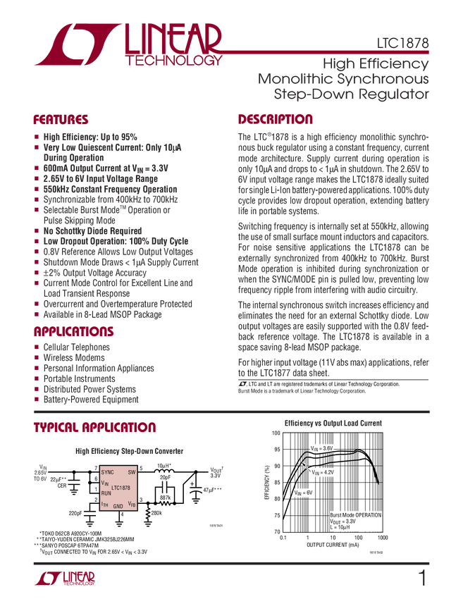 LTC1878 High Efficiency Monolithic Synchronous Step-Down Regulator
