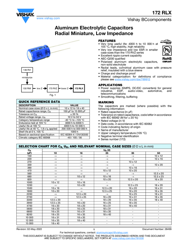 172 RLX Aluminum Electrolytic Capacitors Radial Miniature, Low Impedance