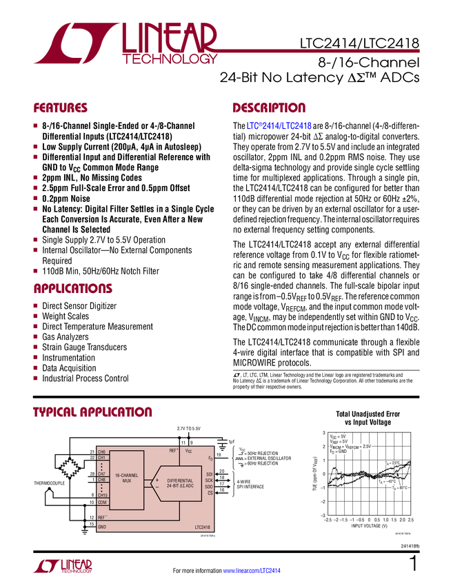 LTC2414 8-/16-Channel 24-Bit No Latency ∆Σ ADCs