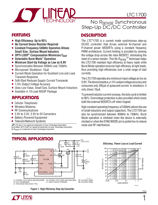 LTC1700 No R Synchronous Step-Up DC/DC Controller