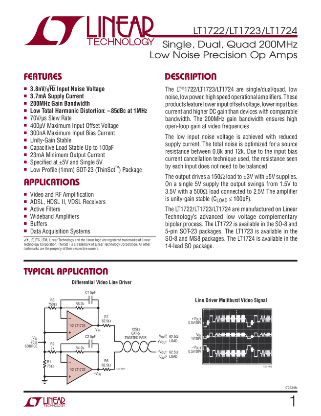 LT1722 Quad 200MHz Low Noise Precision Op Amps