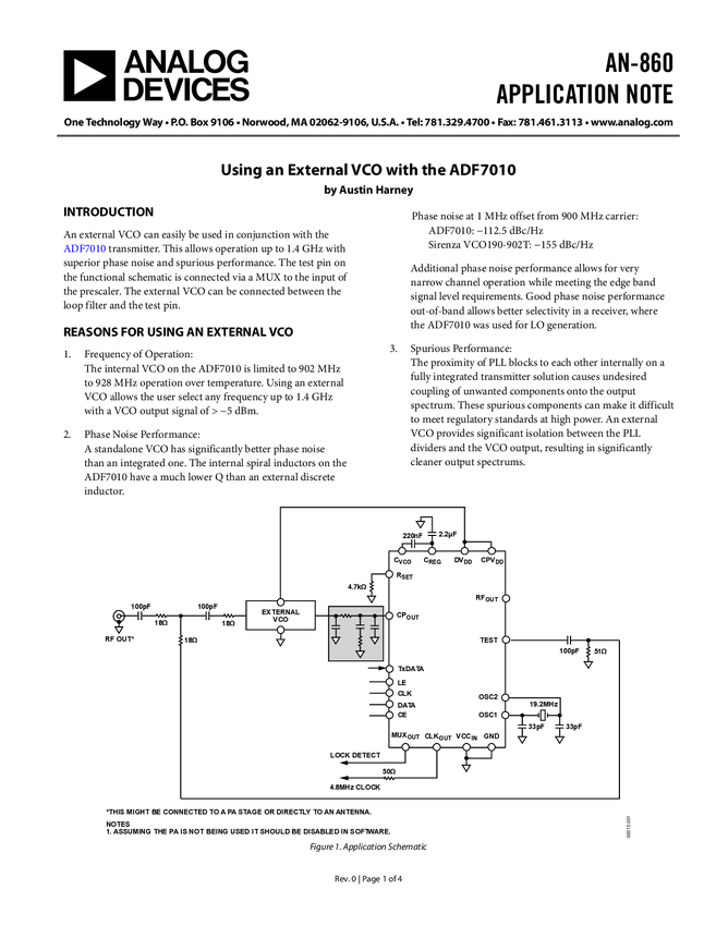ADF7010 High Performance ISM Band ASK/FSK/GFSK Transmitter IC