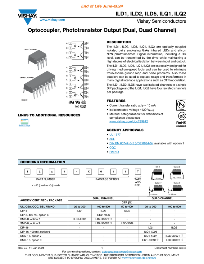 ILQ1 Optocoupler, Phototransistor Output (Dual, Quad Channel)