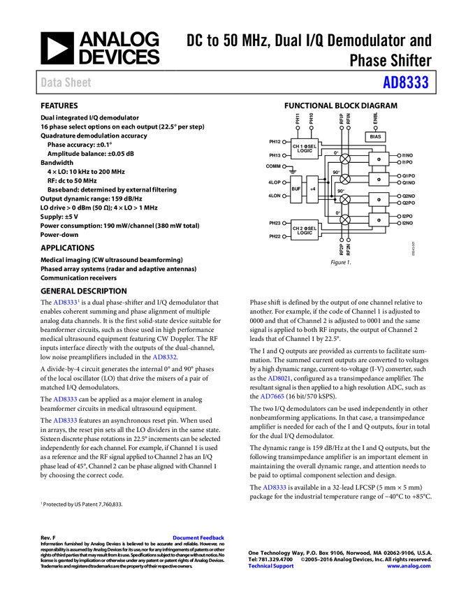 AD8333 DC to 50 MH, Dual I/Q Demodulator and Phase Shifter