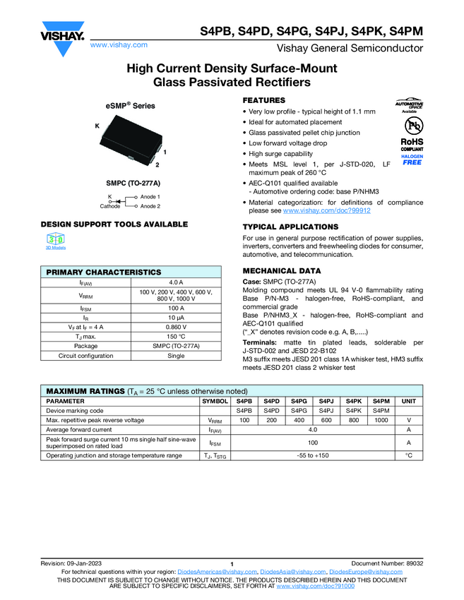 S4PB High Current Density Surface-Mount Glass Passivated Rectifiers