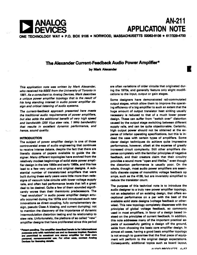 SSM2017 4-Channel, Clickless Serial Input Balance/Master Volume Control