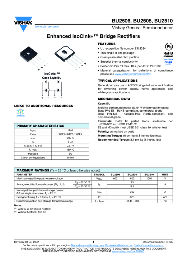 BU2506 Enhanced isoCink+™ Bridge Rectifiers