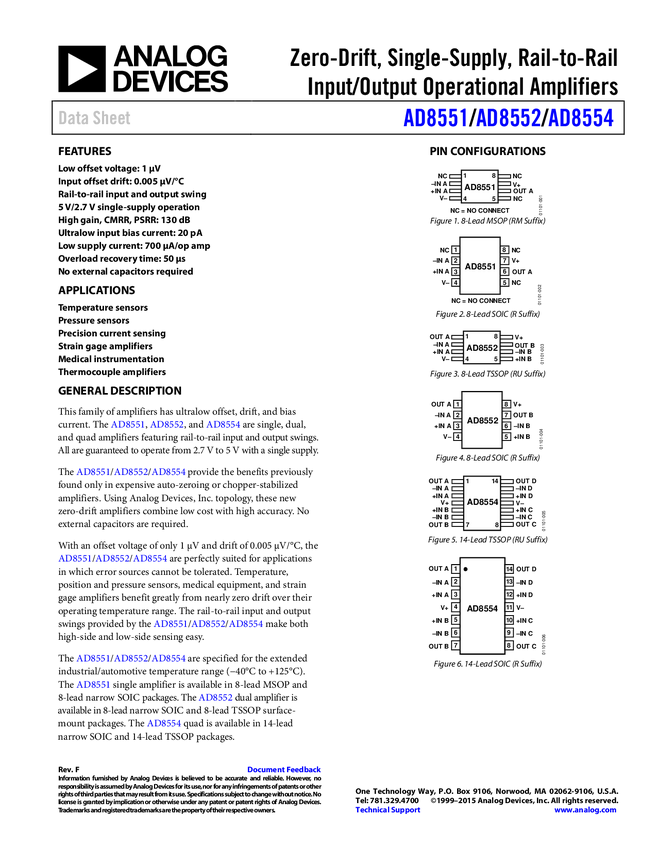 AD8554 Zero-Drift, Single-Supply, RRIO Dual Op Amp