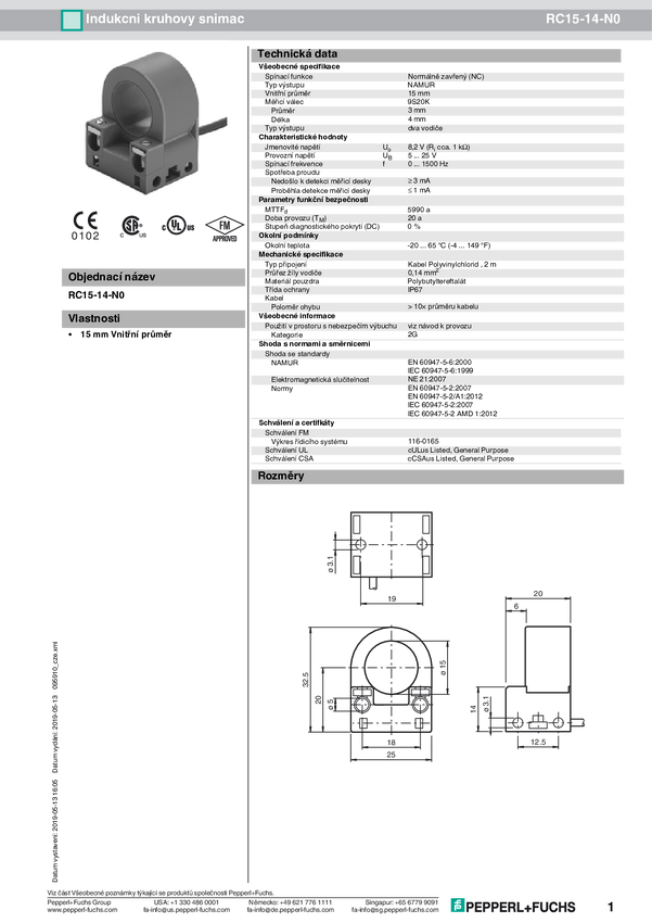 Pepperl+Fuchs Czujnik indukcyjny NAMUR RC15-14-N0 x2xGxxxD