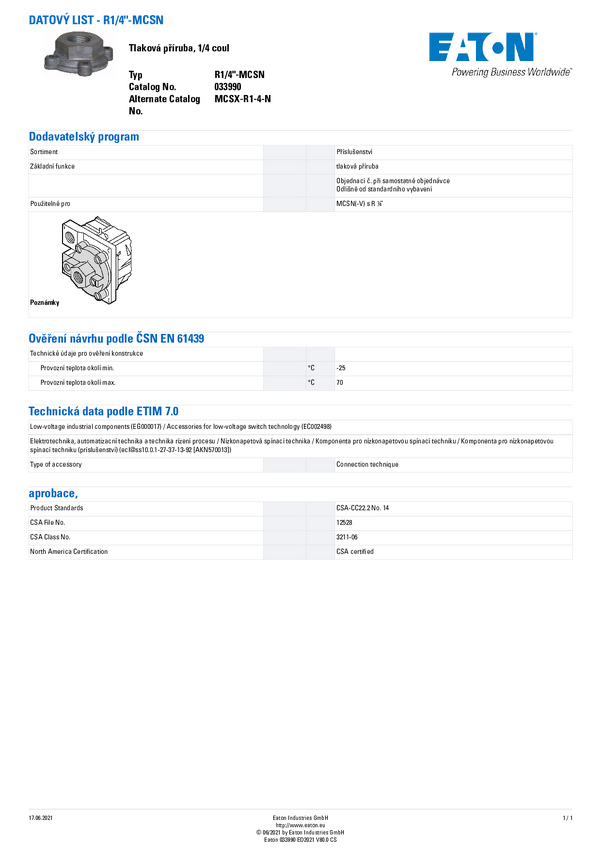 033990 Kołnierz rury Eaton R1/4"-MCSN 1 szt.