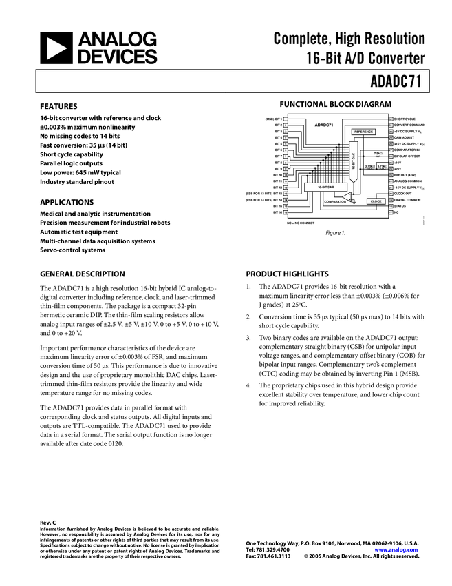 ADADC71 Complete, High Resolution 16-Bit A/D Converters